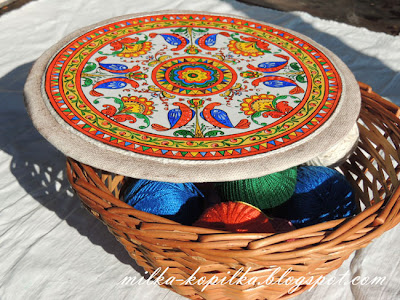 Ура!!! Я сделала это!!! Наконец у меня готов мой главный отчет по Борецкой росписи!!! Рисовала и получала громадное удовольствие!!! Птички-листики-цветочки... В итоге получилась вот такая крышка для плетеной корзинки из лозы.