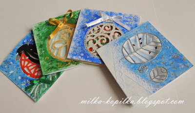Открытки - загляденье! Очень понравился шар узорчатый с росписью внутри. хоть сама роспись и под секретом, а "кружевная зима" очень нежная и воздушная)